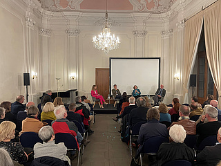 Die Veranstaltung fand in Kooperation des Schelling-Forums mit dem Rudolf-Alexander-Schröder-Haus statt. Das Gespräch moderierte die Pfarrerin und Direktorin der ev. Stadtakademie Katharina Eberlein-Braun.